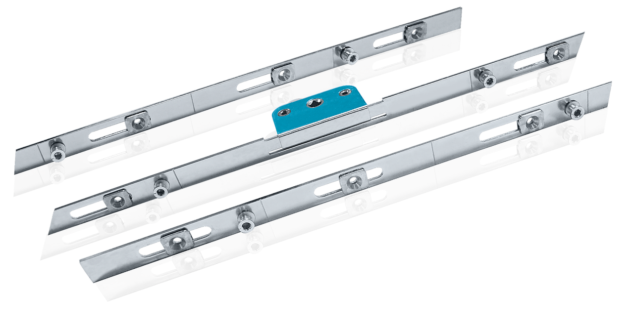 A unique replacement espag system that can be cropped between 400mm and 1000mm and converted from inline to offset by simply removing the packer piece. Available in 21mm or 25mm backsets. Available in 13mm (Slimline) or 16mm (Standard) faceplate widths. Espag faceplate can be cropped below 400mm on one side where the espag is to be used as a replacement for a reach mechanism.